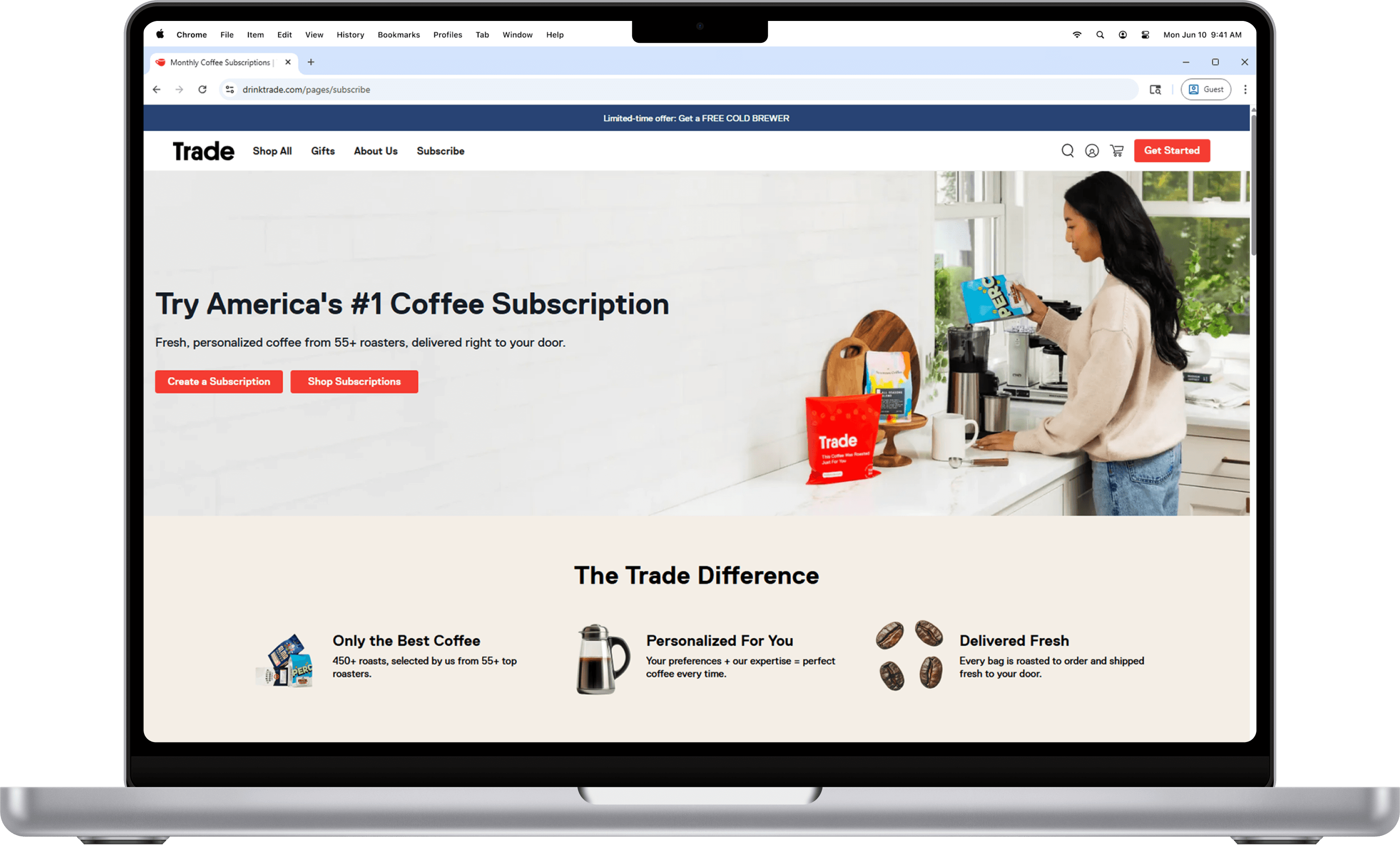 Trade Coffee is a subscription-based marketplace that helps people discover and enjoy better coffee. It curates beans from over 55 of the country's top independent roasters and offers personalized recommendations based on each user's taste preferences.