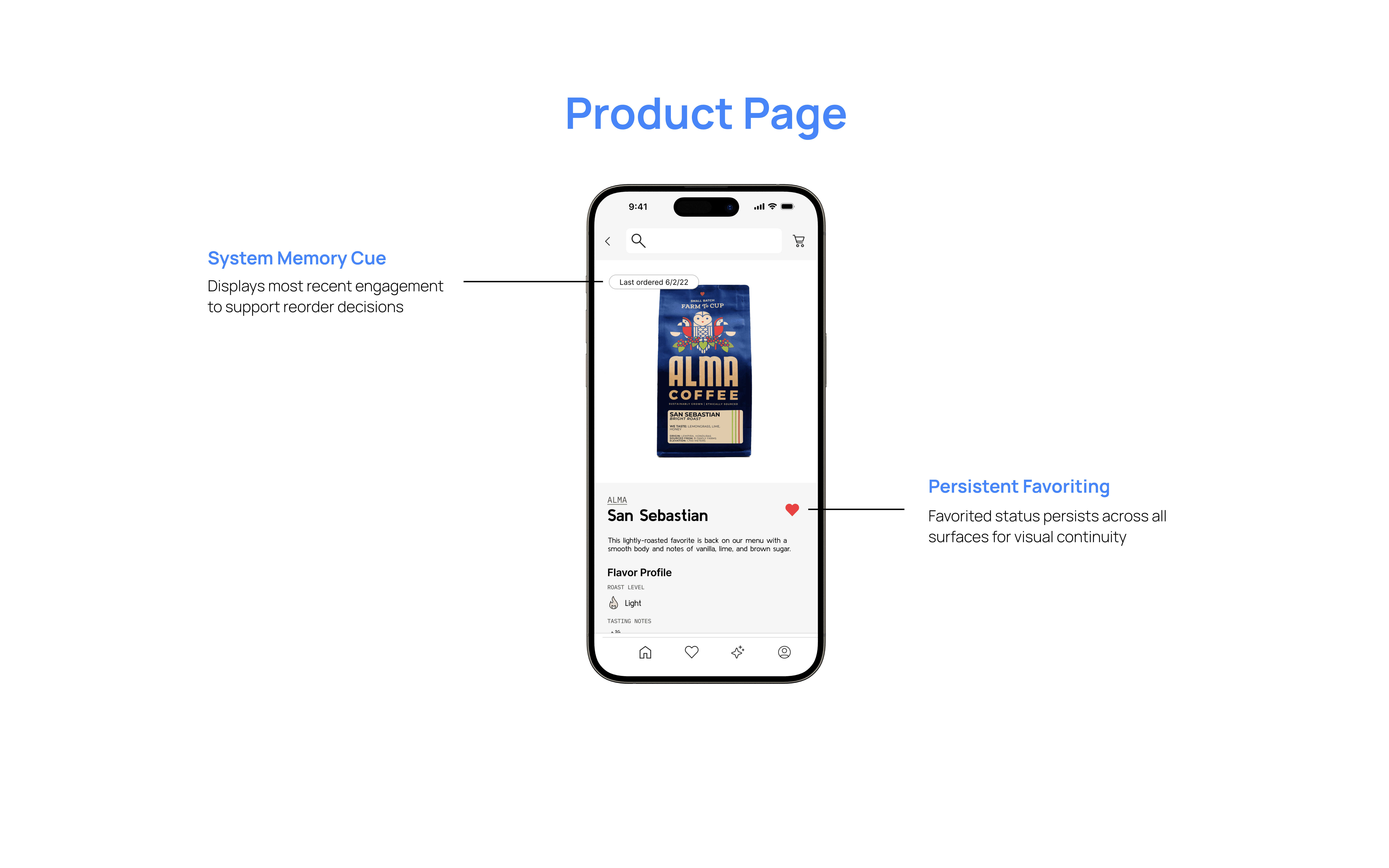 Add persistent favorite icons to coffee cards on product pages